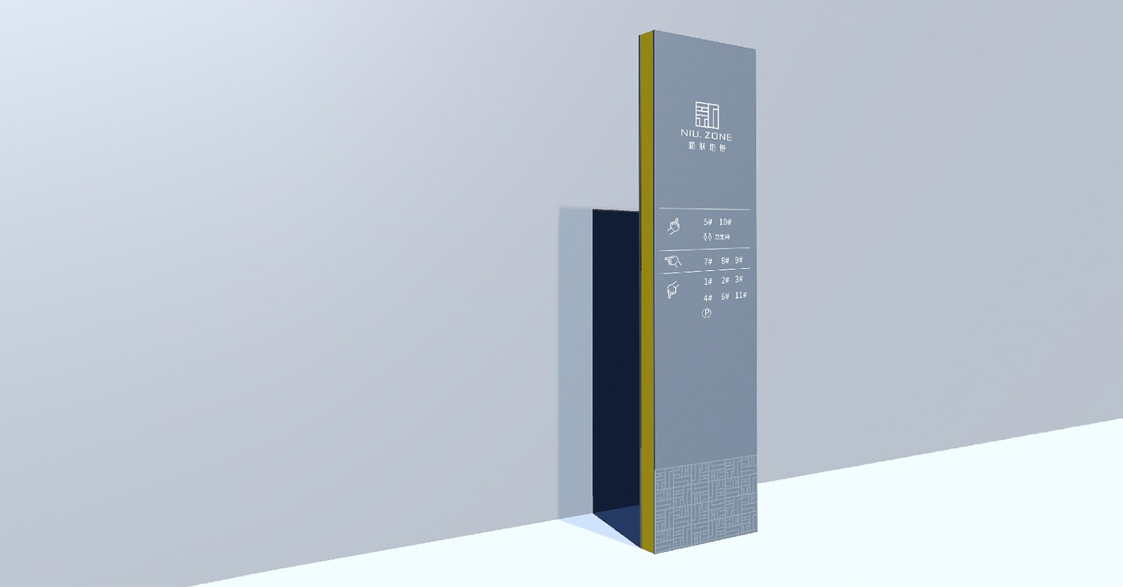 新聯地帶的標識以“新”為創意出發點,新聯地帶作為鼎隆置業的轉型首秀,是鼎隆置業一個新的業態,新的起點,新的征程。LOGO將“新”字簡化抽象,像是一磚一瓦堆砌而成,象征著新聯地帶有著穩固的基底,將穩步發展。