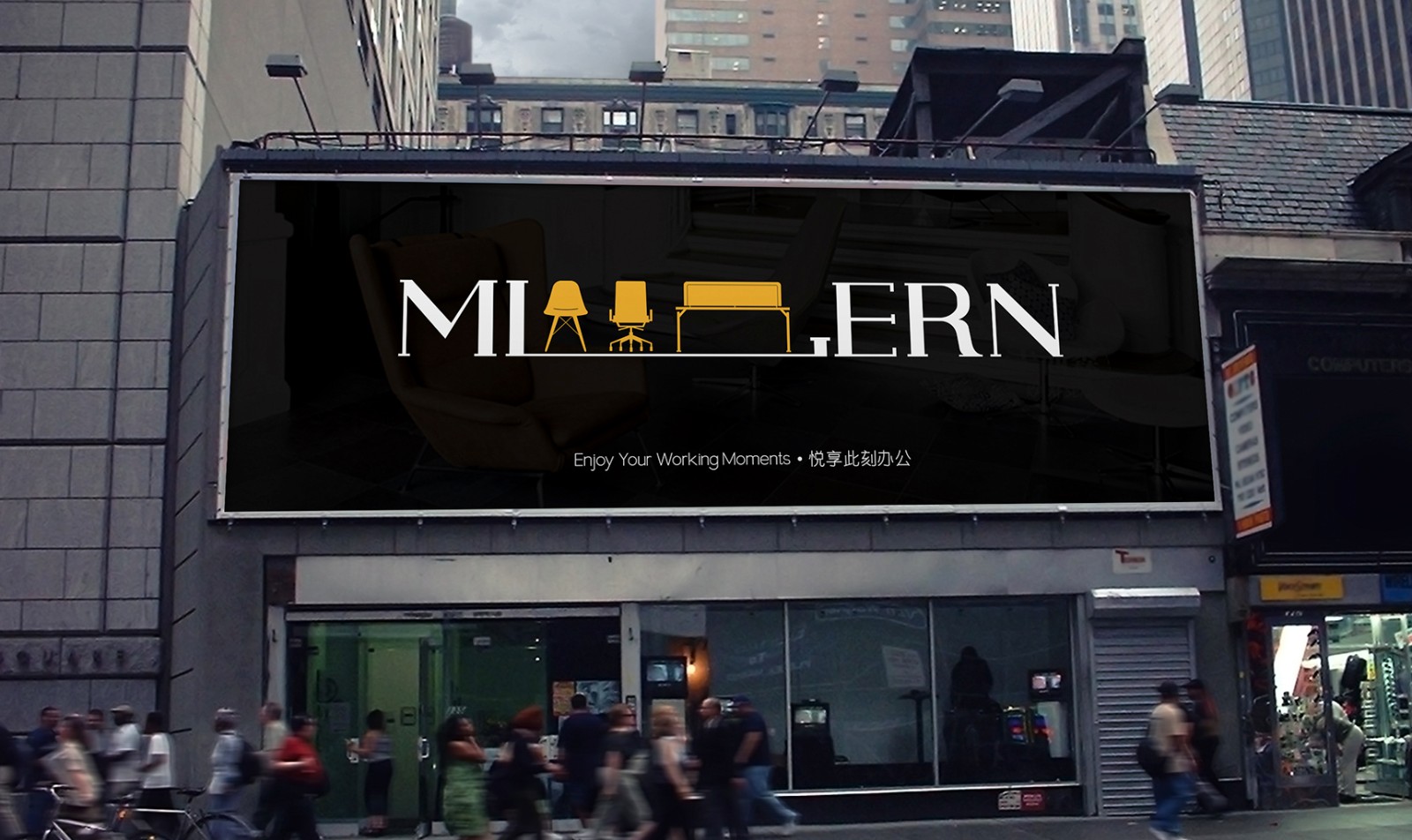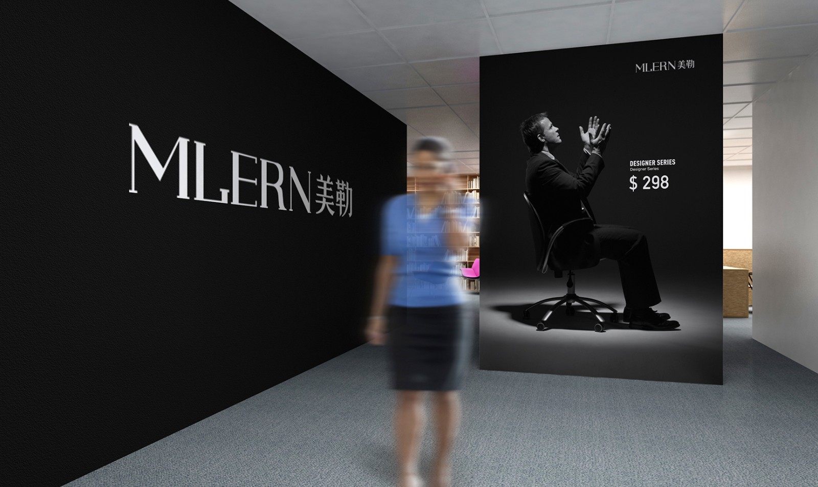 標識形象標識采用襯線的字體進行設計,標識的設計收到了“桌腿、椅子腿”等一切辦公家具的啟發,以企業名稱“MLERN美勒”為主導,其簡潔的線條詮釋出時尚、國際、高雅的內涵,同時也寓意著美勒在激勵的辦公家具市場中占有一席之地。