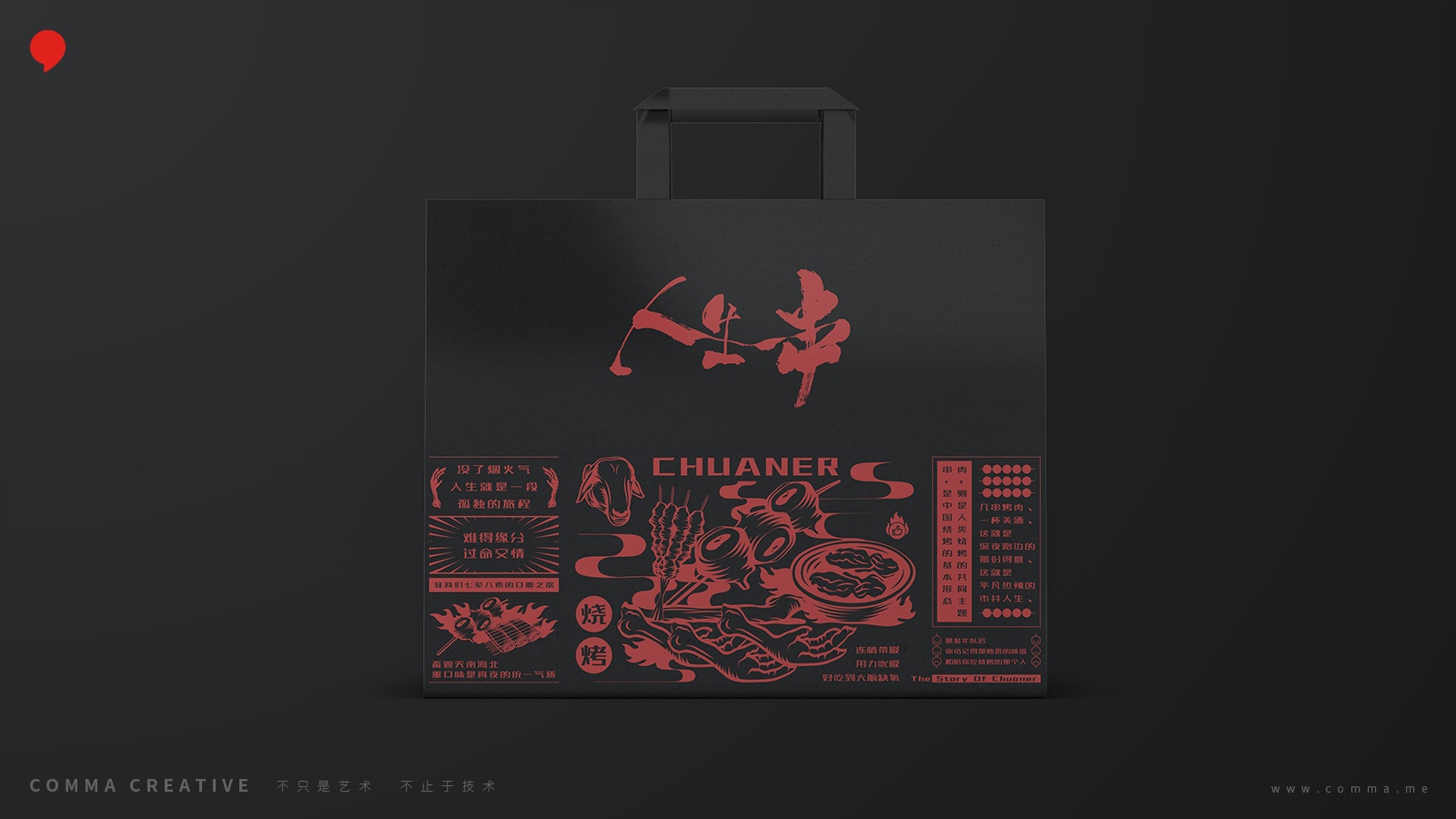 在著手設計之前,我們與燒烤店的運營團隊,就品牌的整體調性歷經了一個多月的碰撞與磨合。我們希望在保留原有《人生一串》欄目“特色菜品+煙火氣+走心文案”精髓的基礎上,為品牌賦予更多的新意,為喜歡燒烤,喜歡《人生一串》的年輕消費者,帶來不一樣的身心感受。 與人生一串線下實體店運營團隊多次溝通后,周邊文創設計上甲方給了我們一定的發揮空間,品牌類物料的設計上我們則需要更“保守”一些,不能偏離《人生一串》原有的IP印象。