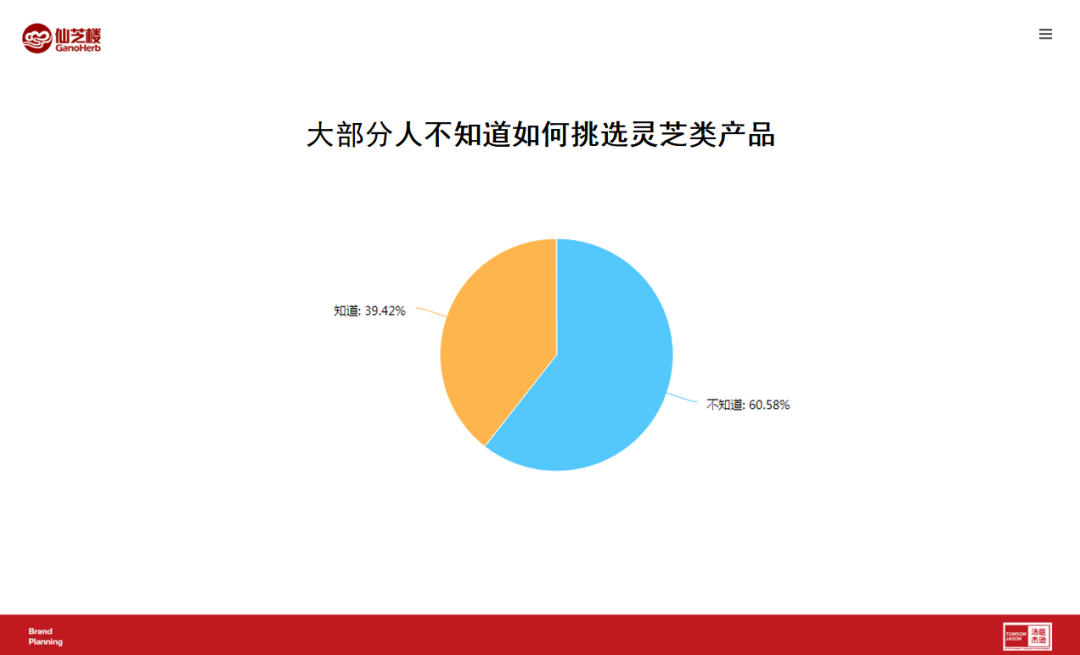 買過仙芝樓的都知道,仙芝樓是大品牌,背書強大。真靈芝,品牌信得過,使用效果好。但問題來了,大多消費者不知道靈芝品類里還有品牌。