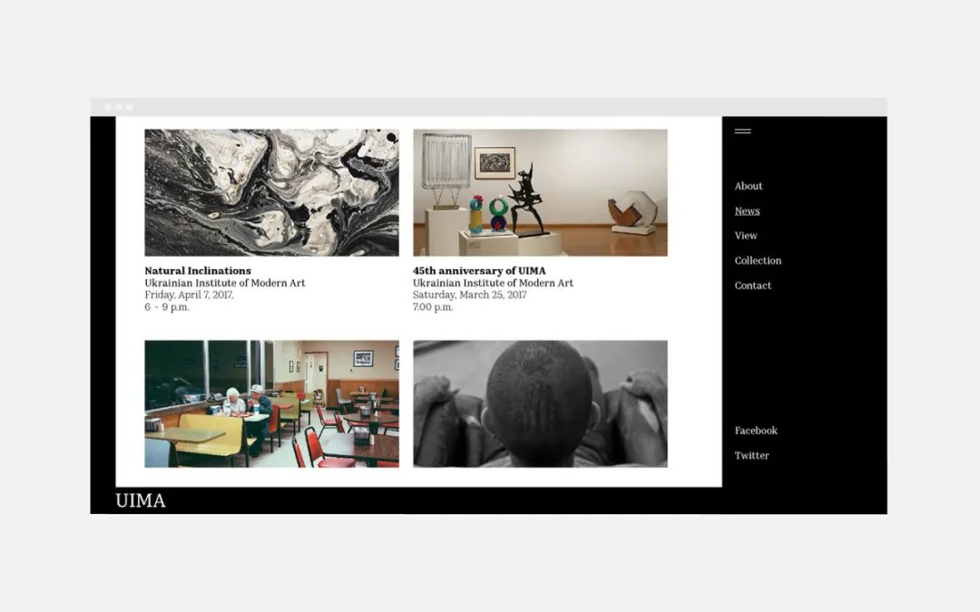 這套形象由烏克蘭設計師Alex Kaplaux設計,Kaplaux以展區、畫框、標簽的意象設計了一個U形的黑色線框,成為一個覇氣十足的現代符號。